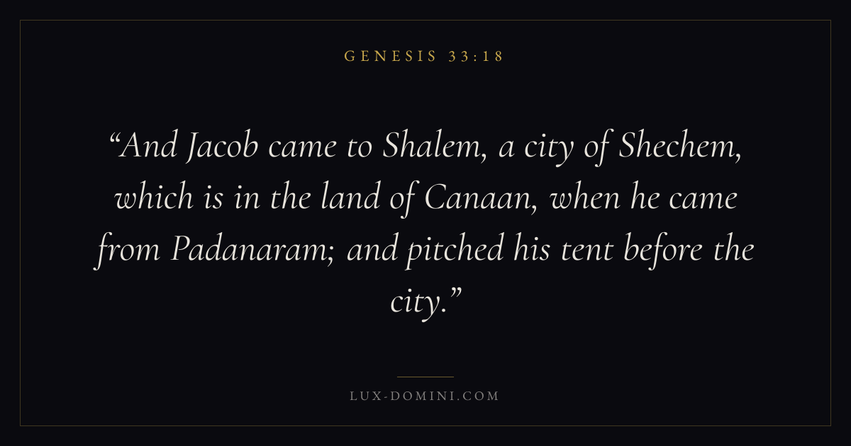And Jacob came to Shalem, a city of Shechem, which is in the land of Canaan, when he came from Padanaram; and pitched his tent before the city.
