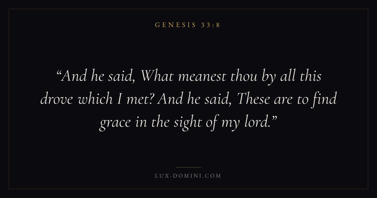 And he said, What meanest thou by all this drove which I met? And he said, These are to find grace in the sight of my lord.