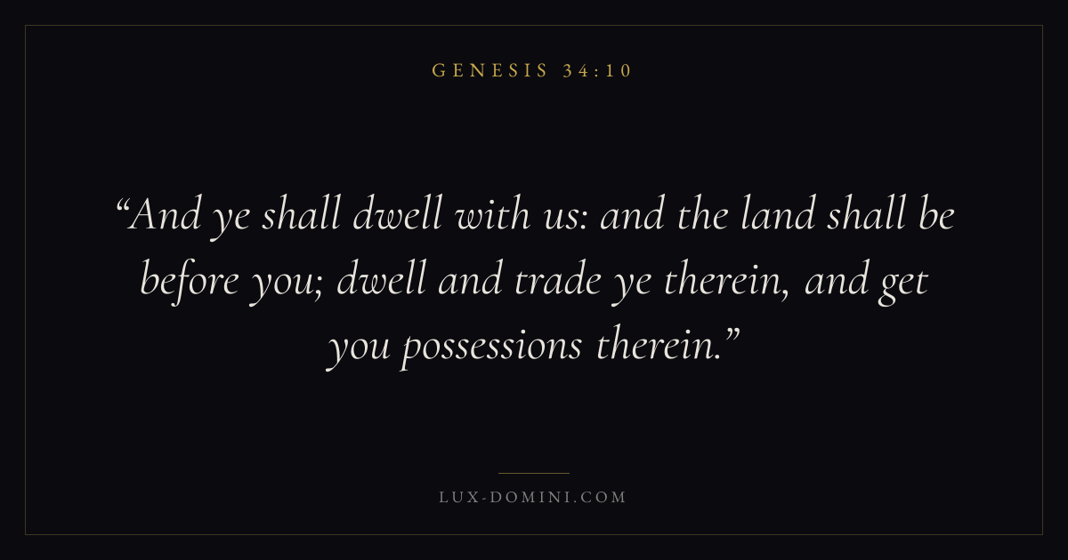And ye shall dwell with us: and the land shall be before you; dwell and trade ye therein, and get you possessions therein.