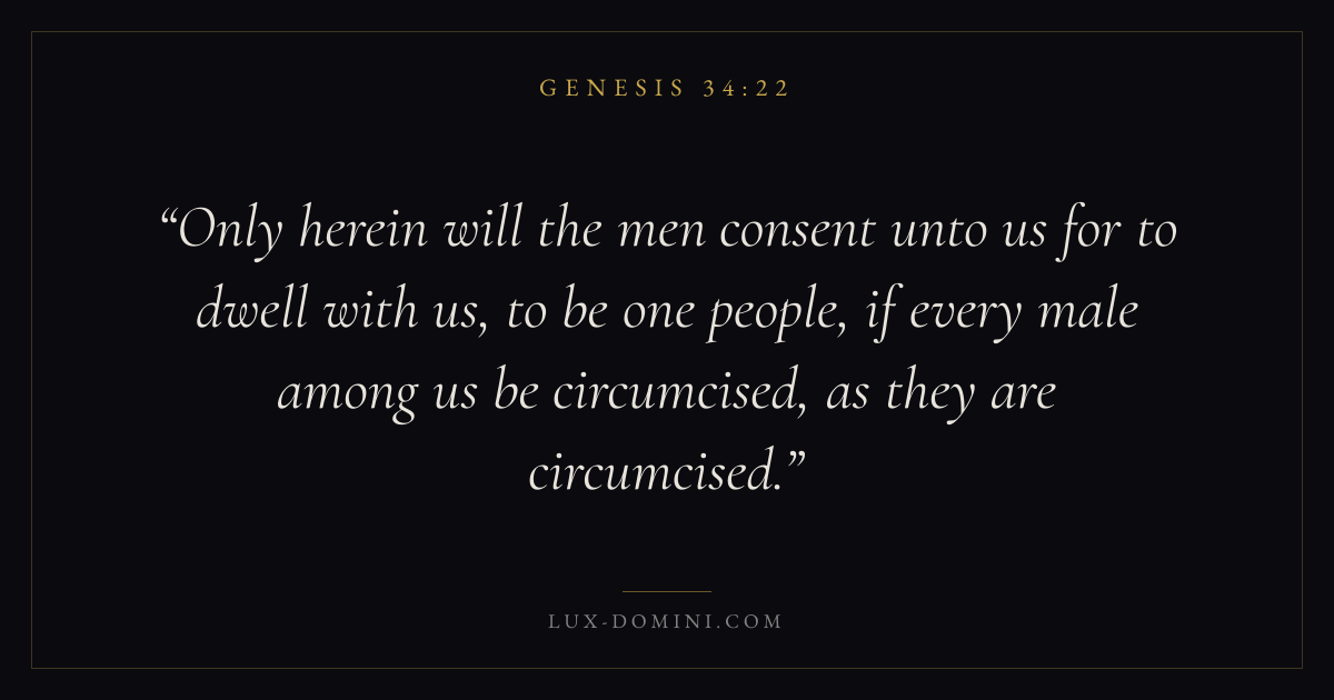 Only herein will the men consent unto us for to dwell with us, to be one people, if every male among us be circumcised, as they are circumcised.