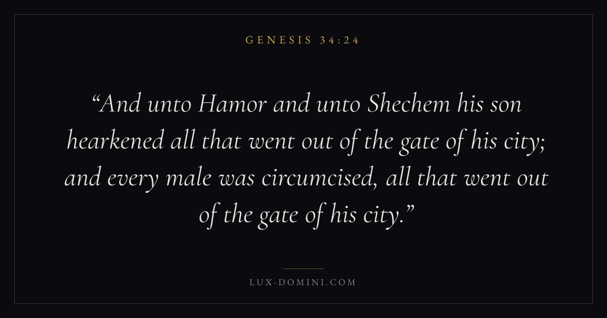 And unto Hamor and unto Shechem his son hearkened all that went out of the gate of his city; and every male was circumcised, all that went out of the gate of his city.