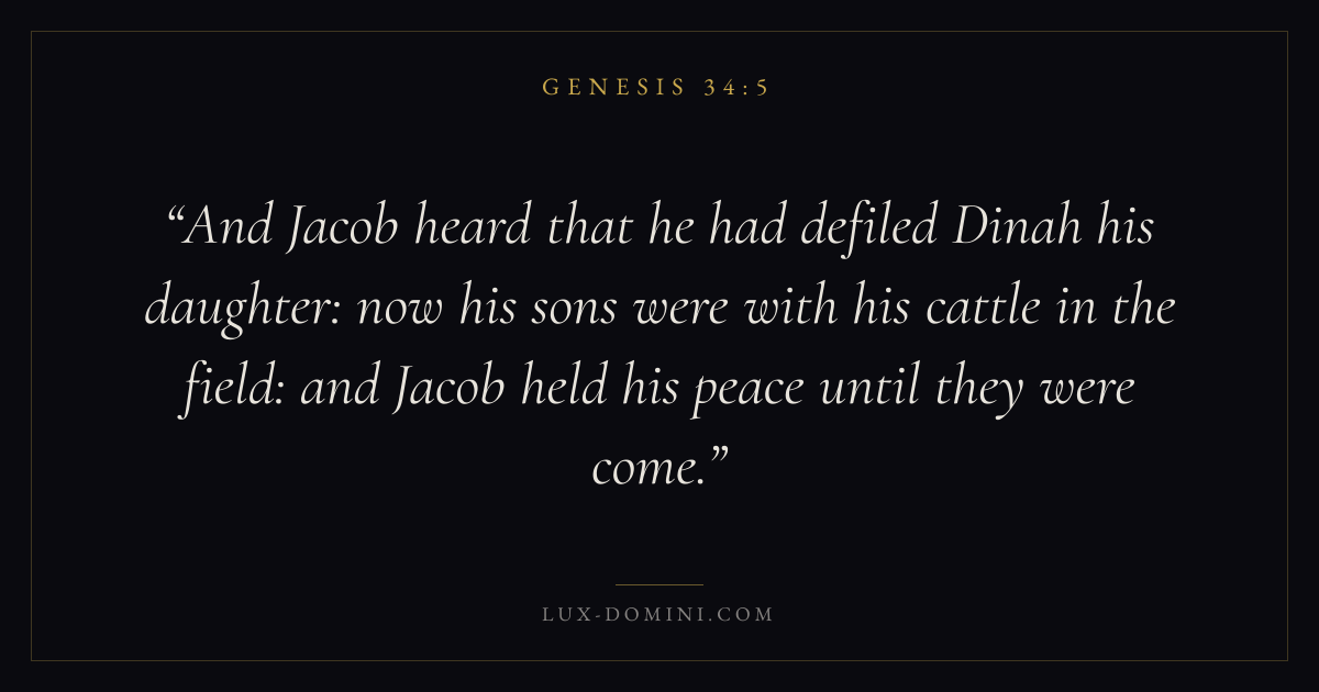 And Jacob heard that he had defiled Dinah his daughter: now his sons were with his cattle in the field: and Jacob held his peace until they were come.