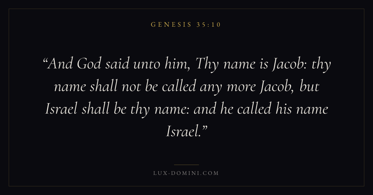 And God said unto him, Thy name is Jacob: thy name shall not be called any more Jacob, but Israel shall be thy name: and he called his name Israel.