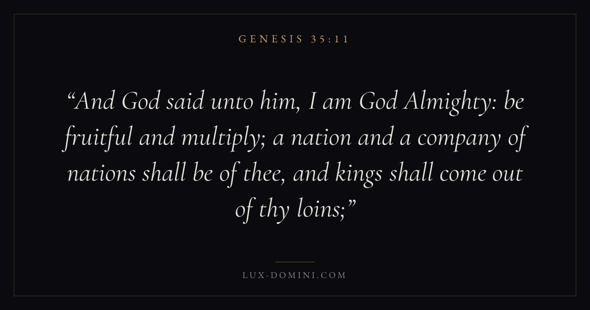 And God said unto him, I am God Almighty: be fruitful and multiply; a nation and a company of nations shall be of thee, and kings shall come out of thy loins;