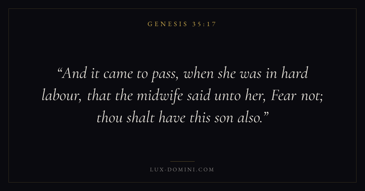 And it came to pass, when she was in hard labour, that the midwife said unto her, Fear not; thou shalt have this son also.
