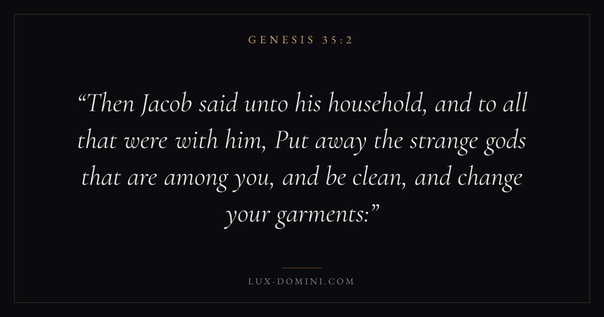 Then Jacob said unto his household, and to all that were with him, Put away the strange gods that are among you, and be clean, and change your garments: