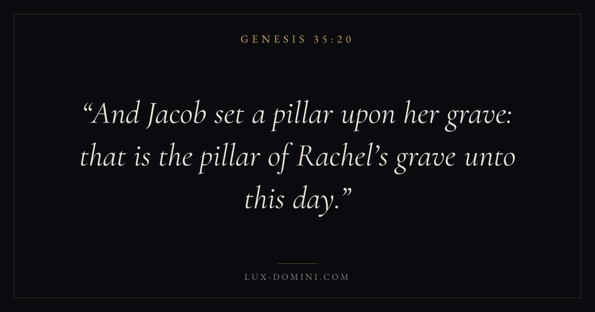 And Jacob set a pillar upon her grave: that is the pillar of Rachel’s grave unto this day.