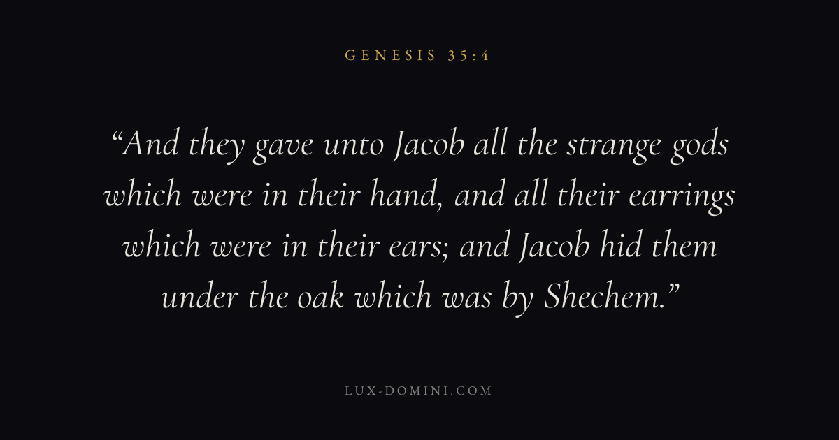 And they gave unto Jacob all the strange gods which were in their hand, and all their earrings which were in their ears; and Jacob hid them under the oak which was by Shechem.