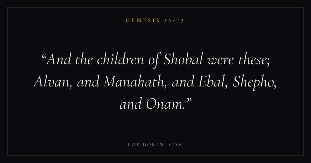 And the children of Shobal were these; Alvan, and Manahath, and Ebal, Shepho, and Onam.