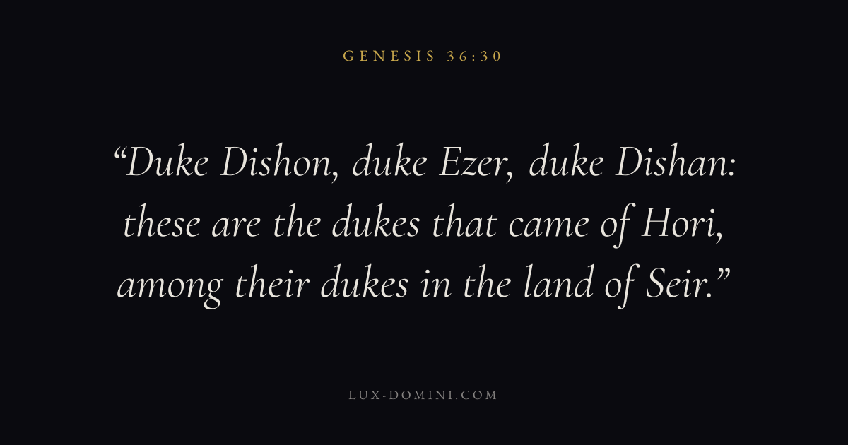 Duke Dishon, duke Ezer, duke Dishan: these are the dukes that came of Hori, among their dukes in the land of Seir.