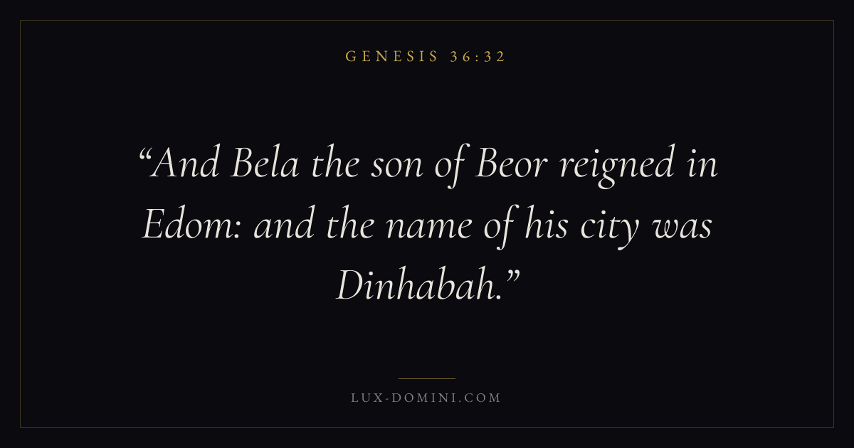 And Bela the son of Beor reigned in Edom: and the name of his city was Dinhabah.