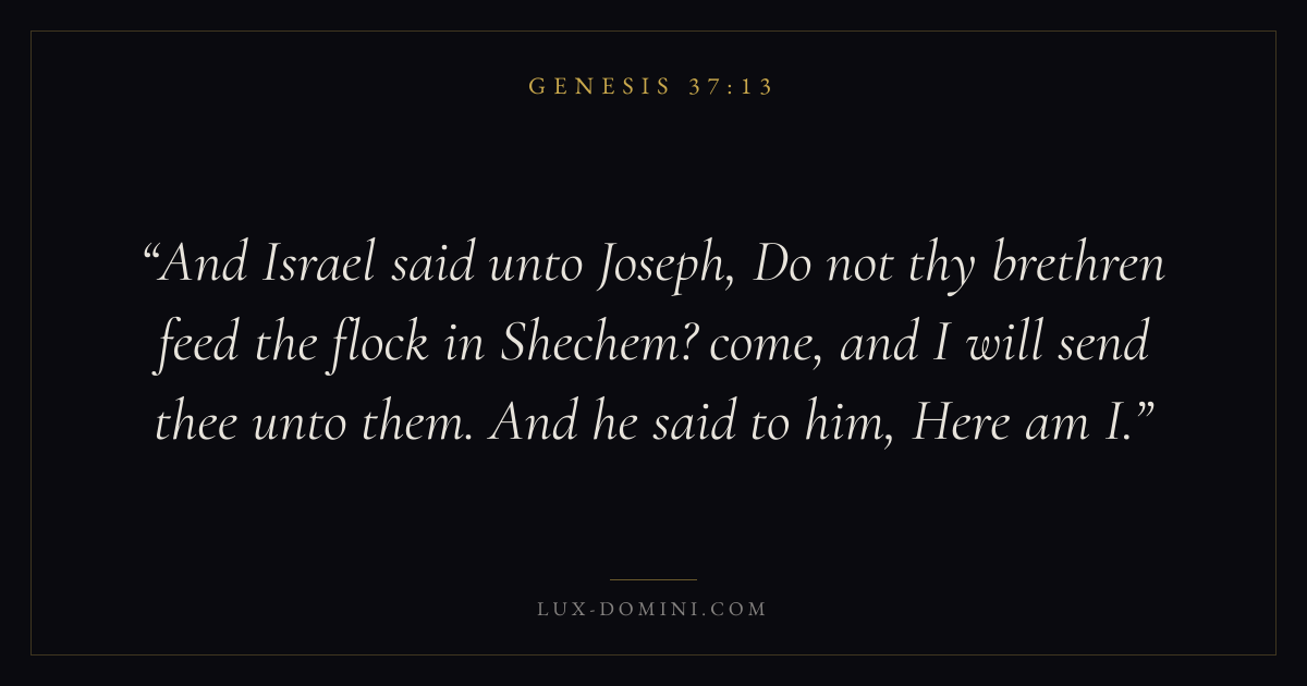And Israel said unto Joseph, Do not thy brethren feed the flock in Shechem? come, and I will send thee unto them. And he said to him, Here am I.