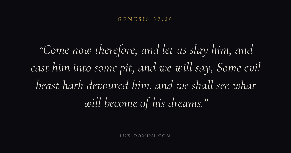 Come now therefore, and let us slay him, and cast him into some pit, and we will say, Some evil beast hath devoured him: and we shall see what will become of his dreams.
