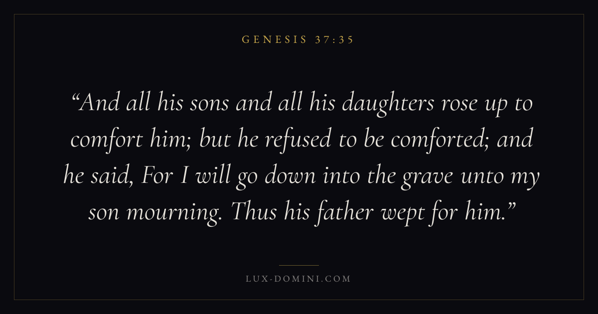 And all his sons and all his daughters rose up to comfort him; but he refused to be comforted; and he said, For I will go down into the grave unto my son mourning. Thus his father wept for him.