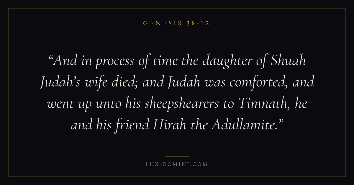 And in process of time the daughter of Shuah Judah’s wife died; and Judah was comforted, and went up unto his sheepshearers to Timnath, he and his friend Hirah the Adullamite.