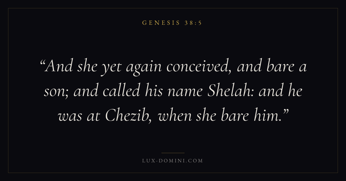 And she yet again conceived, and bare a son; and called his name Shelah: and he was at Chezib, when she bare him.