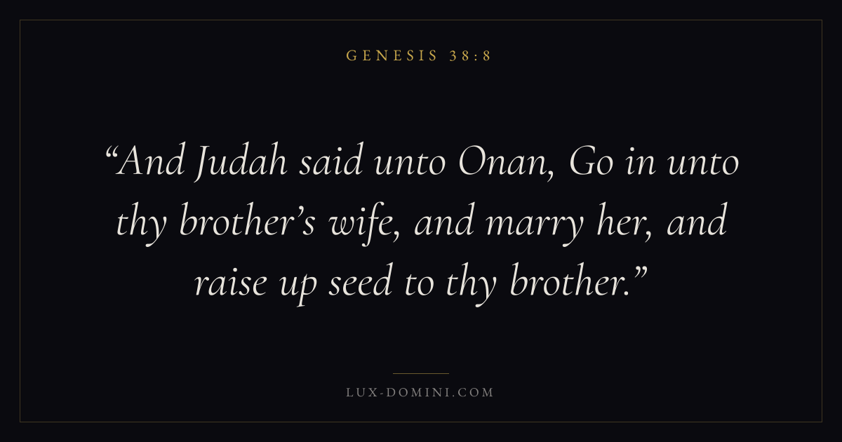 And Judah said unto Onan, Go in unto thy brother’s wife, and marry her, and raise up seed to thy brother.