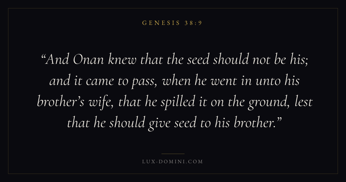 And Onan knew that the seed should not be his; and it came to pass, when he went in unto his brother’s wife, that he spilled it on the ground, lest that he should give seed to his brother.