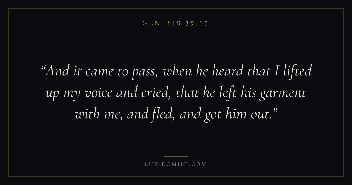 And it came to pass, when he heard that I lifted up my voice and cried, that he left his garment with me, and fled, and got him out.