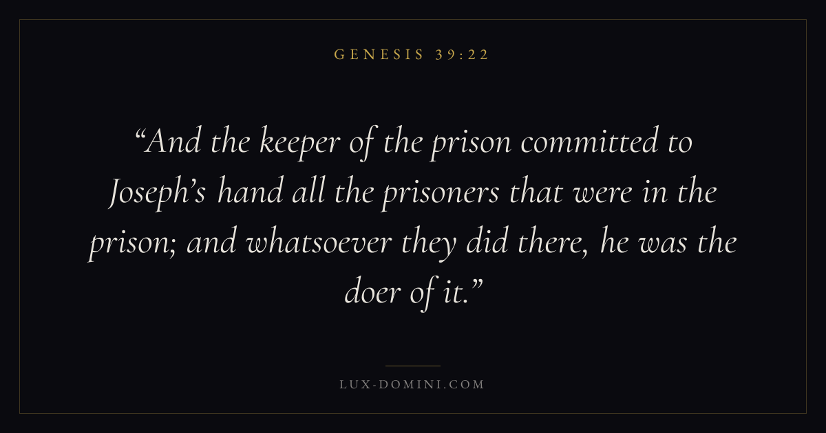 And the keeper of the prison committed to Joseph’s hand all the prisoners that were in the prison; and whatsoever they did there, he was the doer of it.