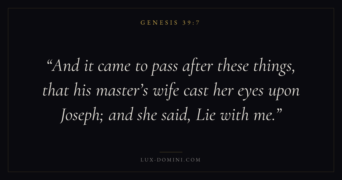 And it came to pass after these things, that his master’s wife cast her eyes upon Joseph; and she said, Lie with me.
