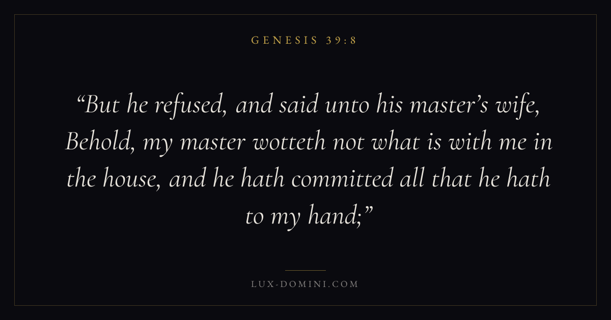 But he refused, and said unto his master’s wife, Behold, my master wotteth not what is with me in the house, and he hath committed all that he hath to my hand;