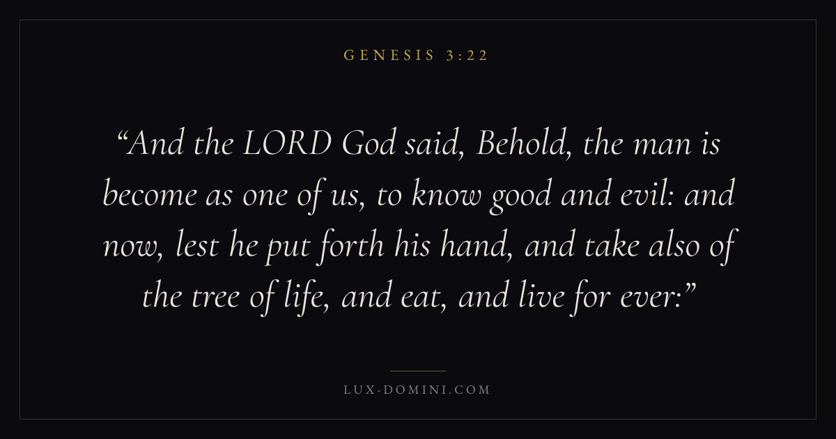 And the LORD God said, Behold, the man is become as one of us, to know good and evil: and now, lest he put forth his hand, and take also of the tree of life, and eat, and live for ever: