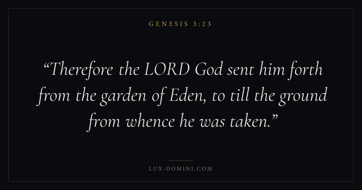 Therefore the LORD God sent him forth from the garden of Eden, to till the ground from whence he was taken.