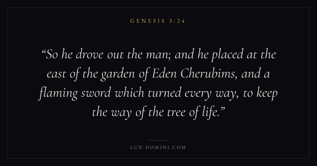 So he drove out the man; and he placed at the east of the garden of Eden Cherubims, and a flaming sword which turned every way, to keep the way of the tree of life.