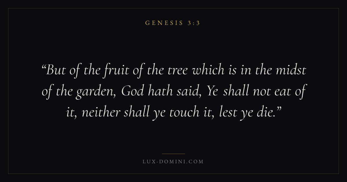 But of the fruit of the tree which is in the midst of the garden, God hath said, Ye shall not eat of it, neither shall ye touch it, lest ye die.