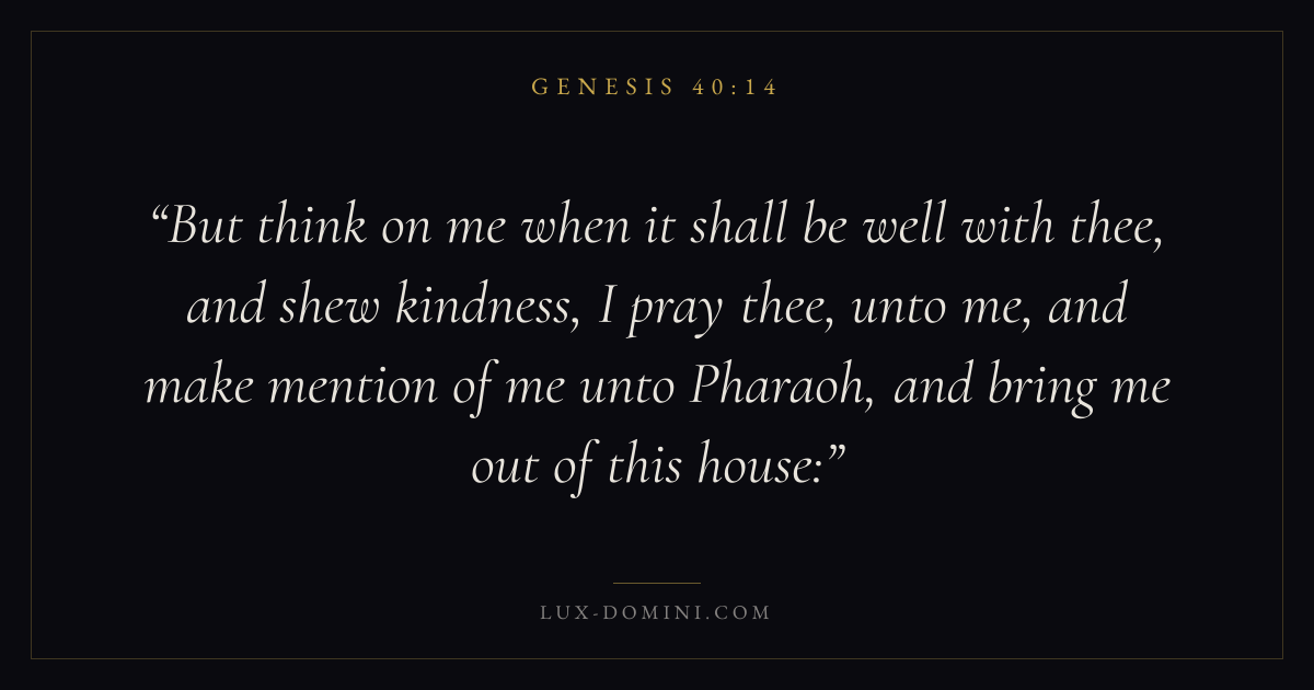 But think on me when it shall be well with thee, and shew kindness, I pray thee, unto me, and make mention of me unto Pharaoh, and bring me out of this house: