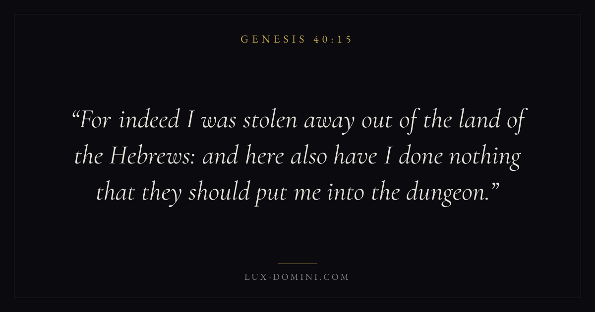 For indeed I was stolen away out of the land of the Hebrews: and here also have I done nothing that they should put me into the dungeon.