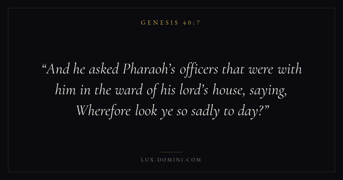 And he asked Pharaoh’s officers that were with him in the ward of his lord’s house, saying, Wherefore look ye so sadly to day?