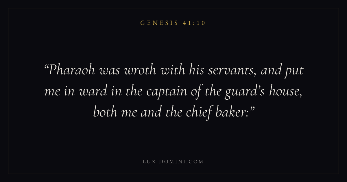 Pharaoh was wroth with his servants, and put me in ward in the captain of the guard’s house, both me and the chief baker: