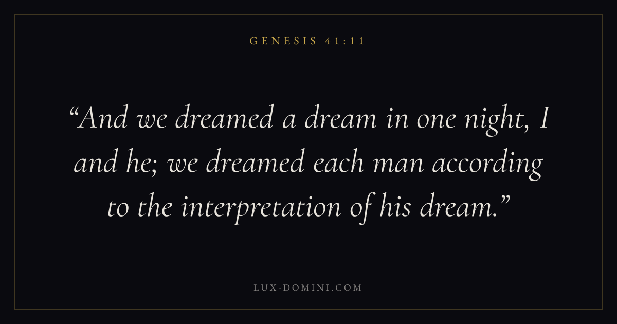 And we dreamed a dream in one night, I and he; we dreamed each man according to the interpretation of his dream.
