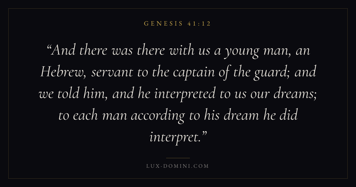 And there was there with us a young man, an Hebrew, servant to the captain of the guard; and we told him, and he interpreted to us our dreams; to each man according to his dream he did interpret.