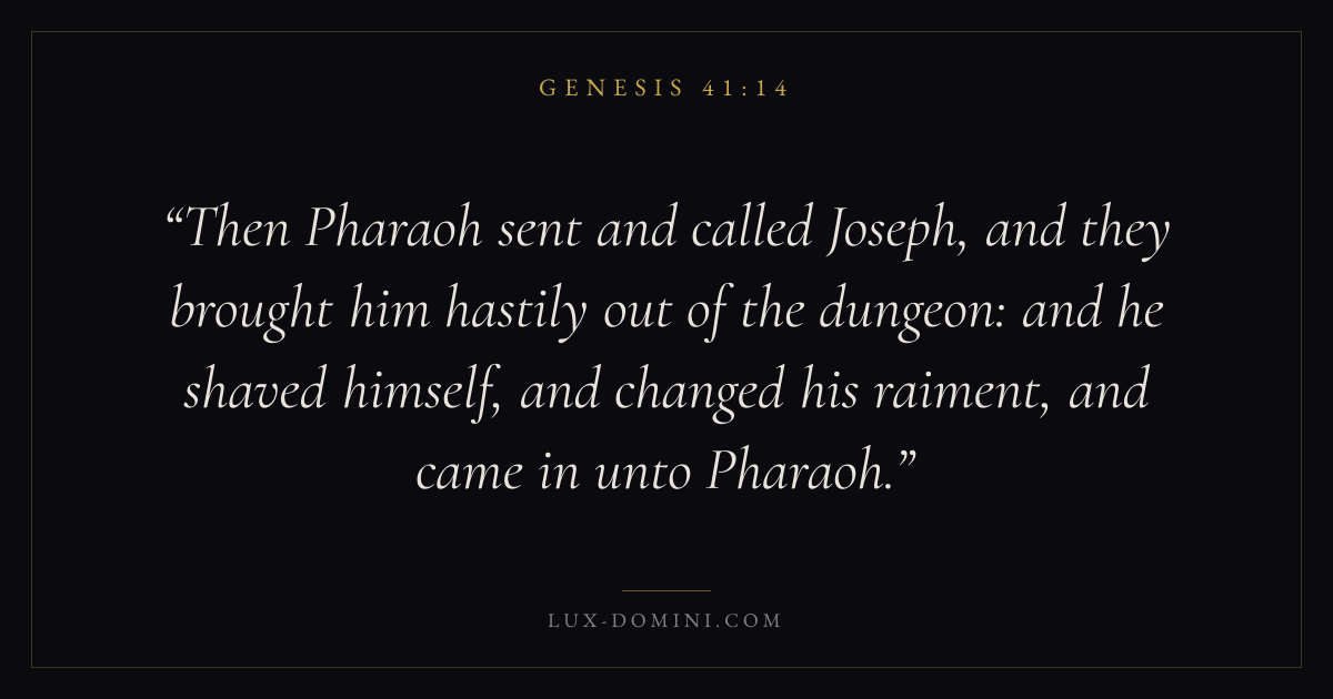 Then Pharaoh sent and called Joseph, and they brought him hastily out of the dungeon: and he shaved himself, and changed his raiment, and came in unto Pharaoh.