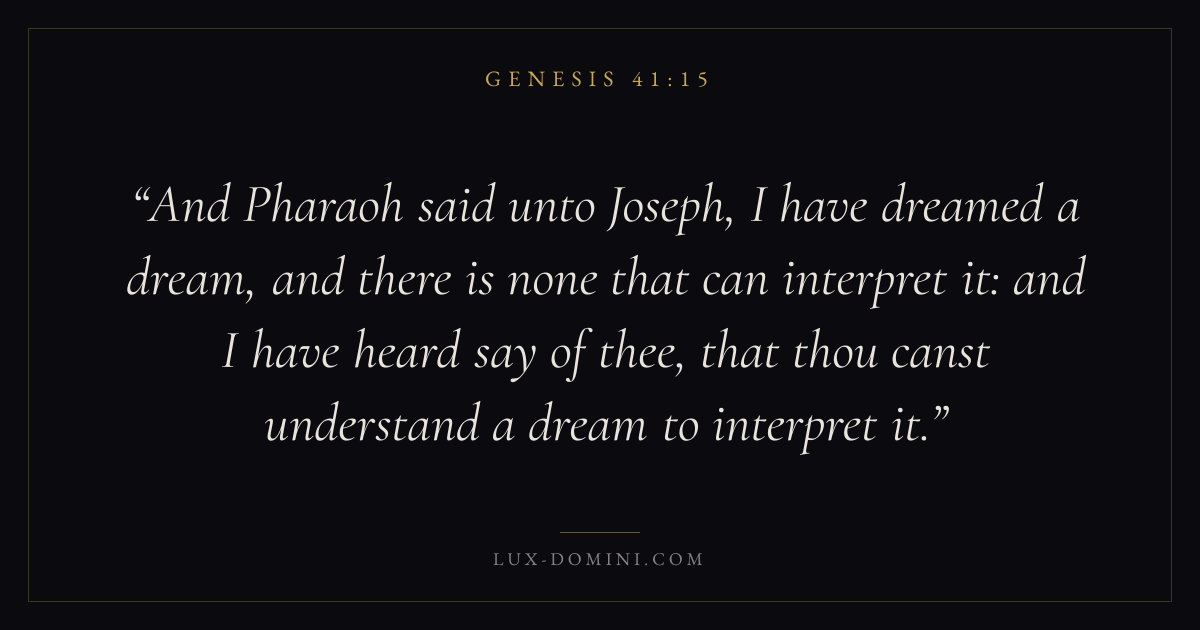 And Pharaoh said unto Joseph, I have dreamed a dream, and there is none that can interpret it: and I have heard say of thee, that thou canst understand a dream to interpret it.