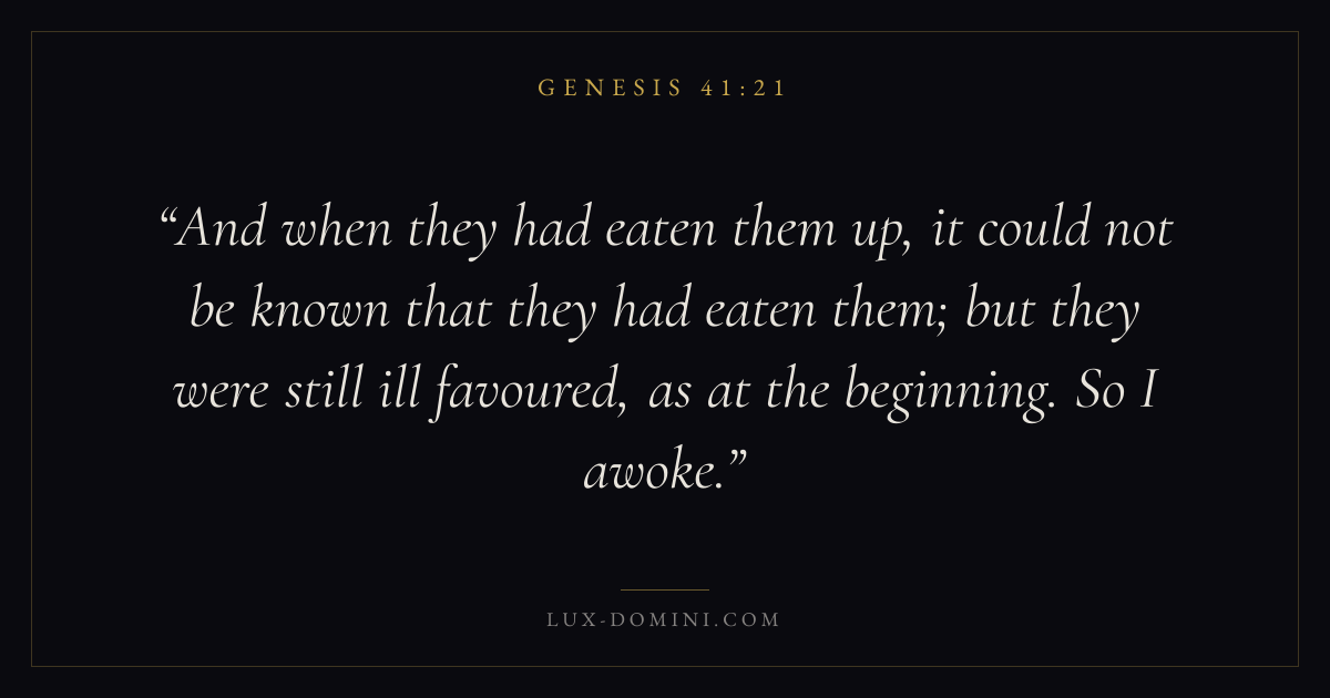 And when they had eaten them up, it could not be known that they had eaten them; but they were still ill favoured, as at the beginning. So I awoke.