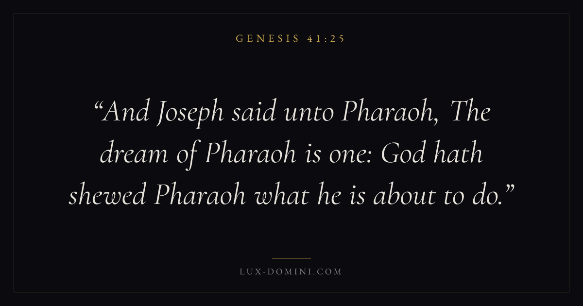 And Joseph said unto Pharaoh, The dream of Pharaoh is one: God hath shewed Pharaoh what he is about to do.