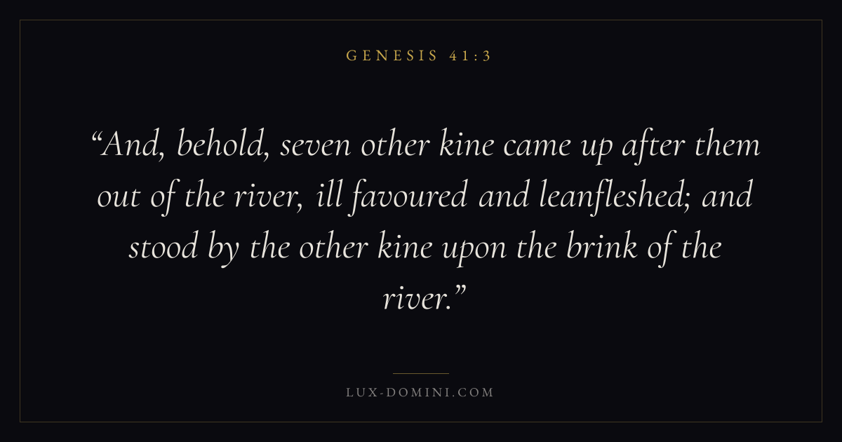 And, behold, seven other kine came up after them out of the river, ill favoured and leanfleshed; and stood by the other kine upon the brink of the river.