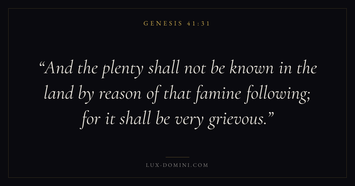 And the plenty shall not be known in the land by reason of that famine following; for it shall be very grievous.