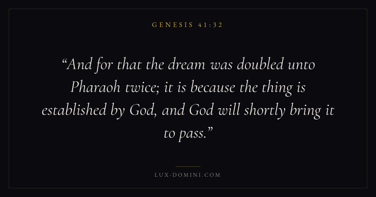 And for that the dream was doubled unto Pharaoh twice; it is because the thing is established by God, and God will shortly bring it to pass.