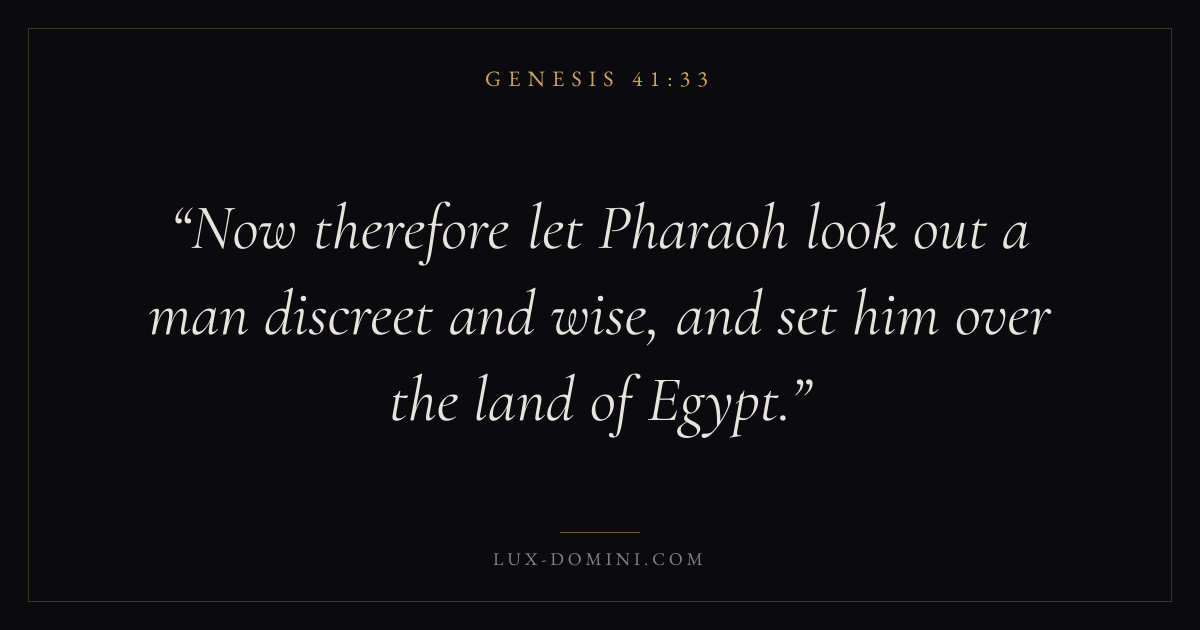 Now therefore let Pharaoh look out a man discreet and wise, and set him over the land of Egypt.
