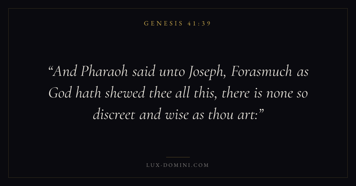 And Pharaoh said unto Joseph, Forasmuch as God hath shewed thee all this, there is none so discreet and wise as thou art:
