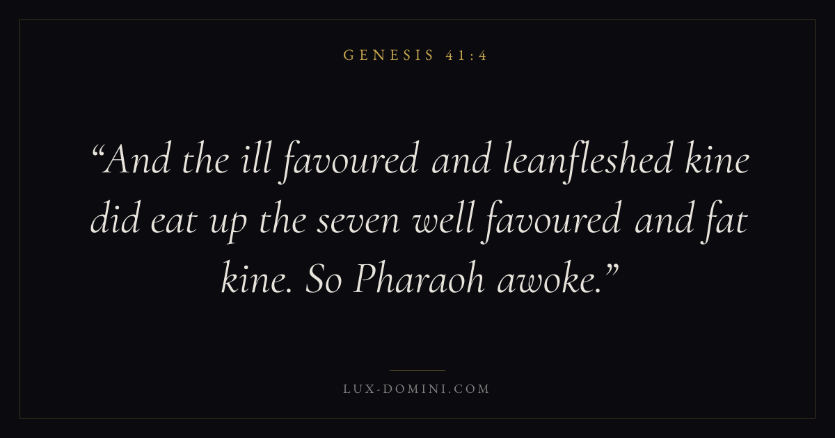And the ill favoured and leanfleshed kine did eat up the seven well favoured and fat kine. So Pharaoh awoke.