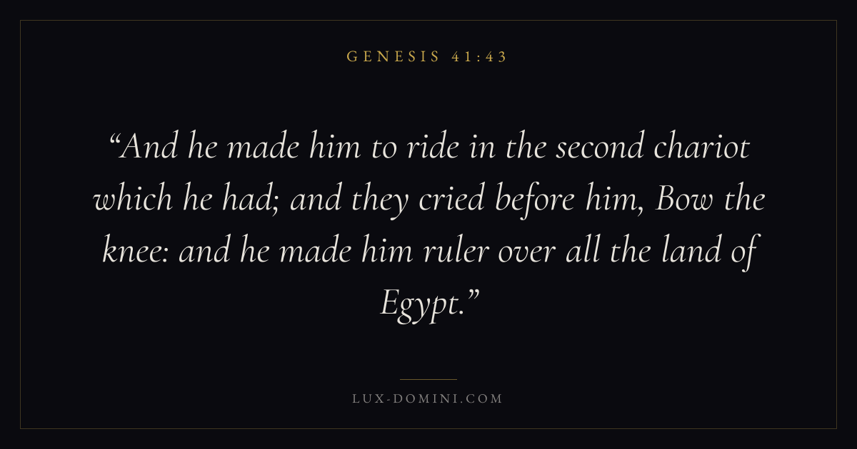 And he made him to ride in the second chariot which he had; and they cried before him, Bow the knee: and he made him ruler over all the land of Egypt.