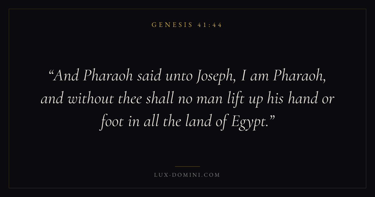 And Pharaoh said unto Joseph, I am Pharaoh, and without thee shall no man lift up his hand or foot in all the land of Egypt.