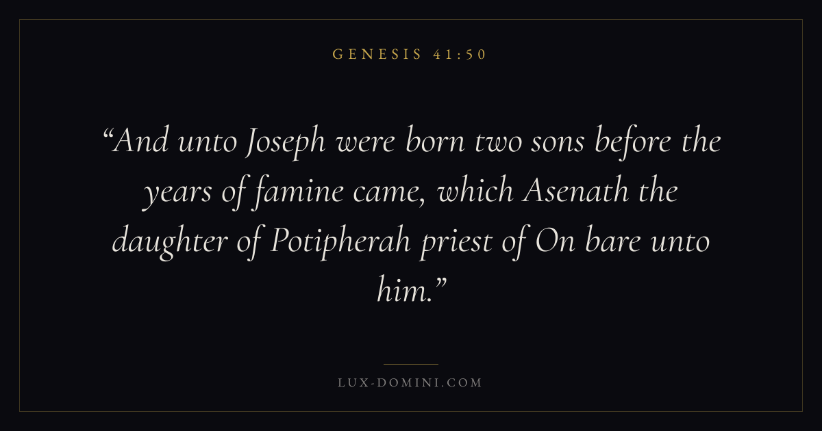 And unto Joseph were born two sons before the years of famine came, which Asenath the daughter of Potipherah priest of On bare unto him.