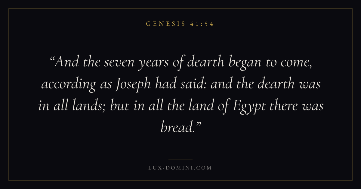 And the seven years of dearth began to come, according as Joseph had said: and the dearth was in all lands; but in all the land of Egypt there was bread.